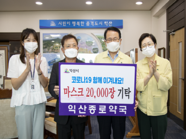 정헌율 시장은“사회재난으로 모두가 힘들고 어려운 시기임에도 불구하고 따뜻한 나눔으로 후원해주신 익산 종로약국에 감사를 드린다”며 “마스크 착용의 중요성이 강조되는 요즘 꼭 필요한 곳에 잘 전해드리겠다”고 전했다.